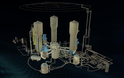 下图为一回路专设安全设施系统主要组成三维场景截图。学生通过鼠标操作实现全方位漫游,方便观察系统主要组成。